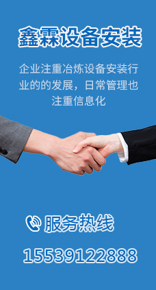 沁陽市鑫霖設備安裝工程有限公司,地處經濟發達的河南-沁陽市,這里交通便利。企業注重冶煉設備安裝行業的的發展,日常管理也注重信息化。  沁陽市鑫霖設備安裝工程有限公司在多年的誠信經營下,市場對企業好評如潮,如果您對我們的主營業務及服務有興趣可以給我在線留言咨詢,也可以電聯,電話號碼:15539122888 期盼與你合作發展!  沁陽市鑫霖設備安裝工程有限公司歡迎四方顧客,八方嘉賓,為您的騰達.........了解更多>>